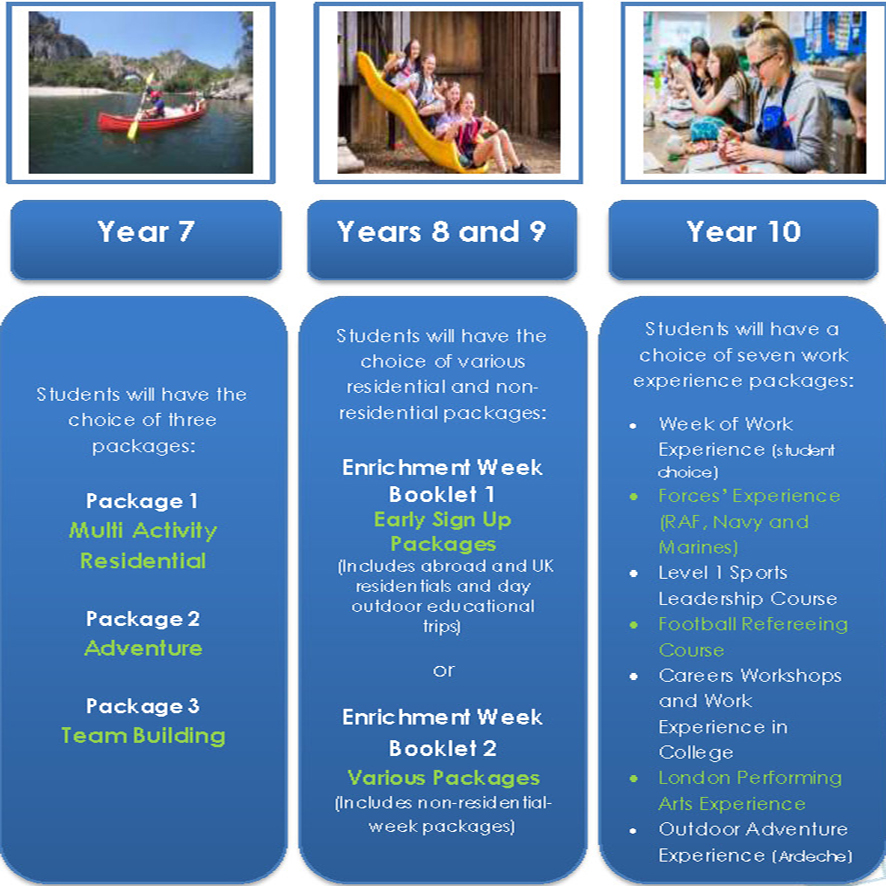 During Enrichment Week the normal College timetable is collapsed and students are offered a range of alternative learning experiences and activities outside of the usual curriculum. The week provides students with the opportunity to see and experience places and attractions both in the UK and abroad.